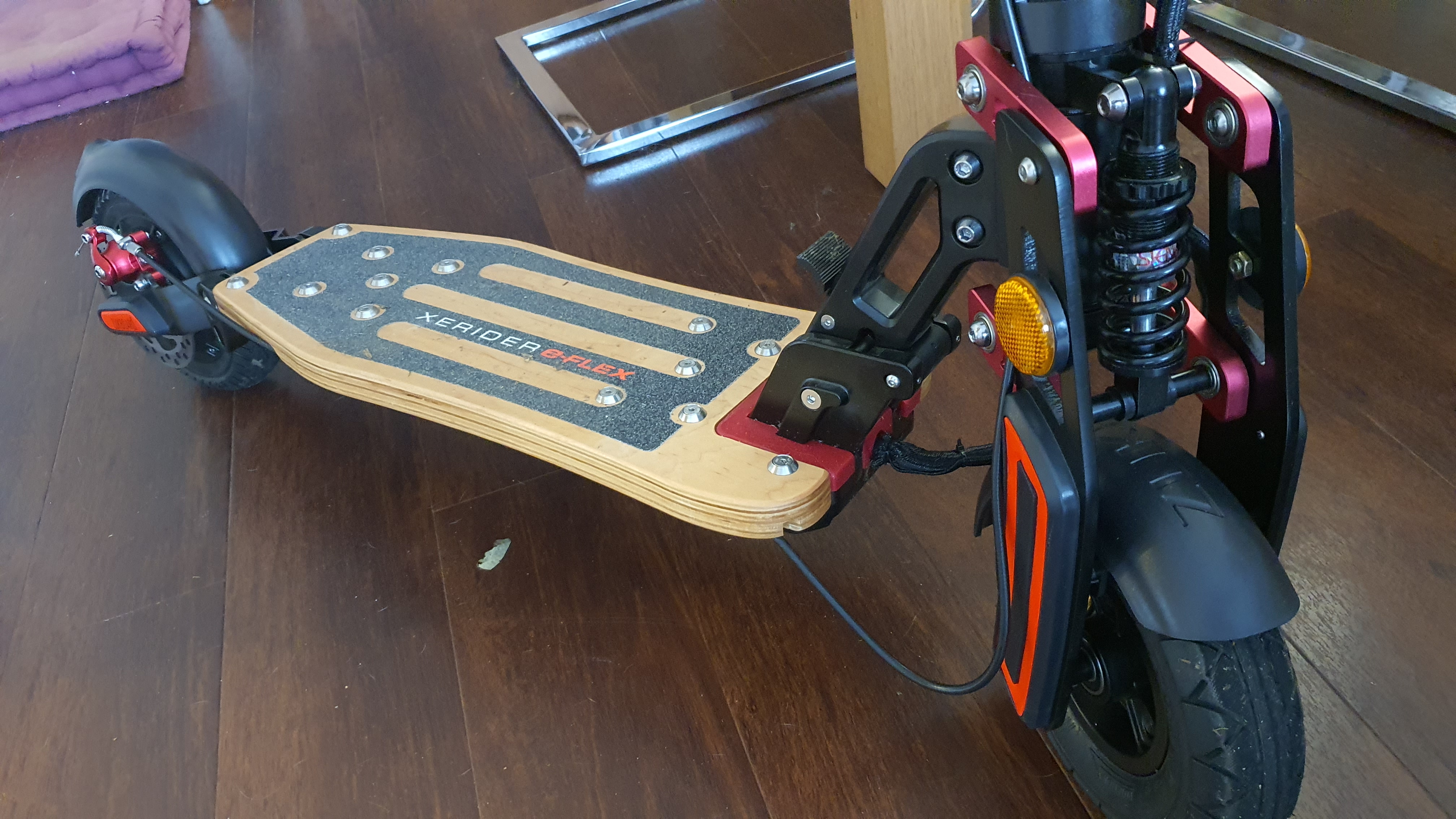 Posté le 04/03/2020 à 06:20"Achat à distance de la e-Flex, je note l'agréable dévouement de Xerider jusqu'à la livraison ! (édition en mai 2020 : merci pour l'assistance vidéo sur le réglage du frein arrière !) La trottinette est très bien construite et la disponibilité des pièces détachées rassure. Le confort est bien au rendez-vous et la puissance est au poil. On regrettera peut-être seulement un système d'anti-démarrage, et un frein avant (dispo en option toutefois)"